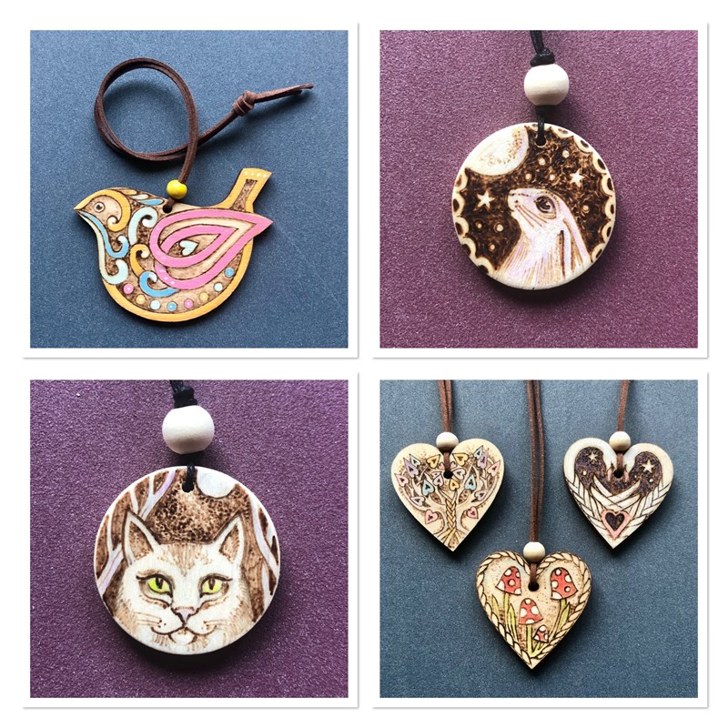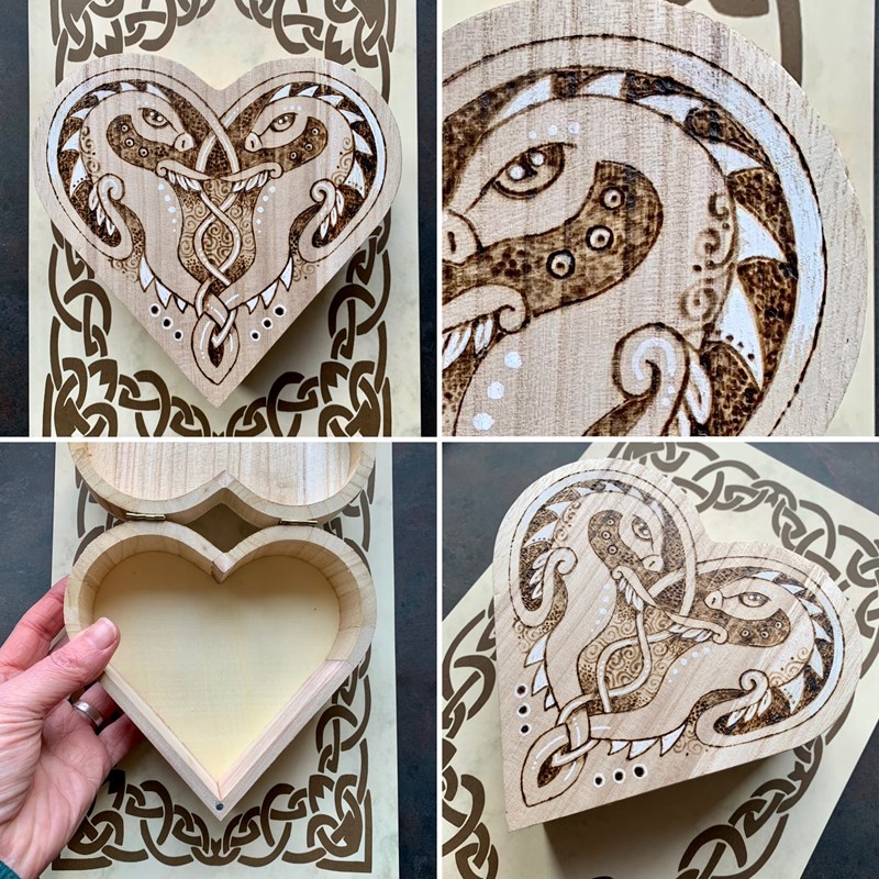 The art or technique of decorating wood or leather by burning a design on the surface with a heated metallic point. A finely honed skill if I say so myself as one false move and it's very difficult to erase. However there is something hugely cathartic about working on wood.